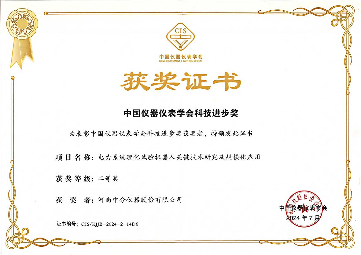 近日,我公司参与的《电力系统理化试验机器人关键技术研究及规模化应用》荣获中国仪器仪表学会2024年科技进步二等奖。